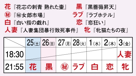 2016年11月20日に生誕45周年を迎える「日活ロマンポルノ」。今回28年ぶりに製作された完全オリジナルロマンポルノ新作<ロマンポルノ・リブート・プロジェクト>公開に併せて、過去1,100以上あるタイトルから厳選されたクラシックの傑作を上映致します。ロマンポルノが始まった1970年代、あの狂熱の時代の熱量を感じることが出来る作品群です。 | |