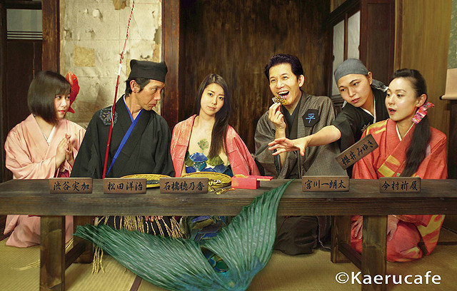 秋原北胤27作目は寛政の改革で手鎖の刑から放免された山東京伝の「箱入娘面屋人魚」が原作。「浦島登太郎」のスピンアウトで、独特なオリジナル感漂う禁じ手コメディ。主演の宮川一朗太と石橋穂乃香を迎え、恐怖を覚えるほどの独創劇が劇場を包みます。宮川&松田の共演は初!テレビ版家族ゲームの茂之と映画版家族ゲームの茂之が本作で交錯する夢の共演となります。脇を固めるのは秋原組レギュラーの今村祈履、咲良ら。レギュラーメンバーも魚となり大活躍!